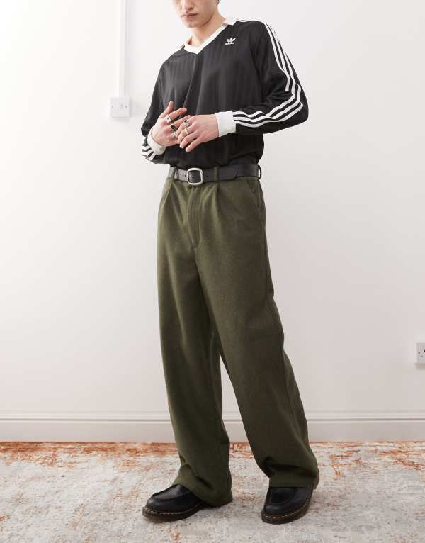 【サイズ交換無料】 エイソス メンズ ボトムス カジュアルパンツ OLIVE【送料無料】 エイソス メンズ カジュアルパンツ ボトムス ASOS DESIGN wool look oversized tapered dress pants in olive twill OLIVE