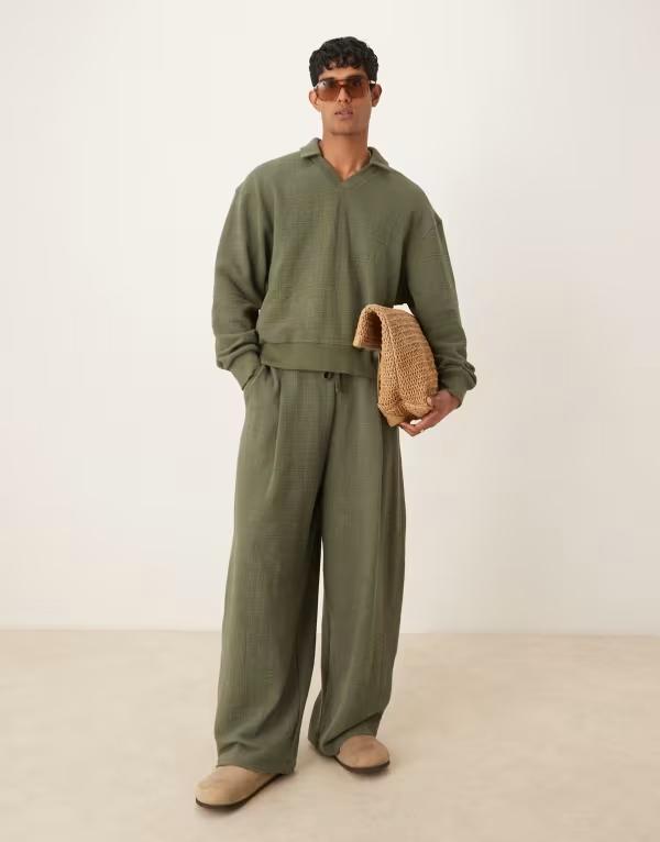 【サイズ交換無料】 エイソス メンズ ボトムス カジュアルパンツ Dark khaki【送料無料】 エイソス メンズ カジュアルパンツ ボトムス ASOS DESIGN oversized balloon linen look sweatpants in khaki green Dark khaki