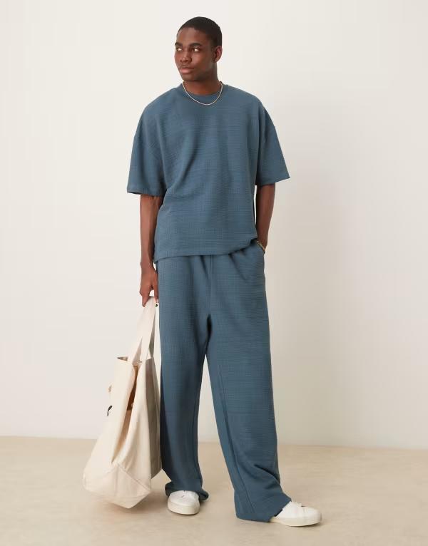 【サイズ交換無料】 エイソス メンズ ボトムス カジュアルパンツ Dark Slate【送料無料】 エイソス メンズ カジュアルパンツ ボトムス ASOS DESIGN wide leg linen look sweatpants in blue Dark Slate