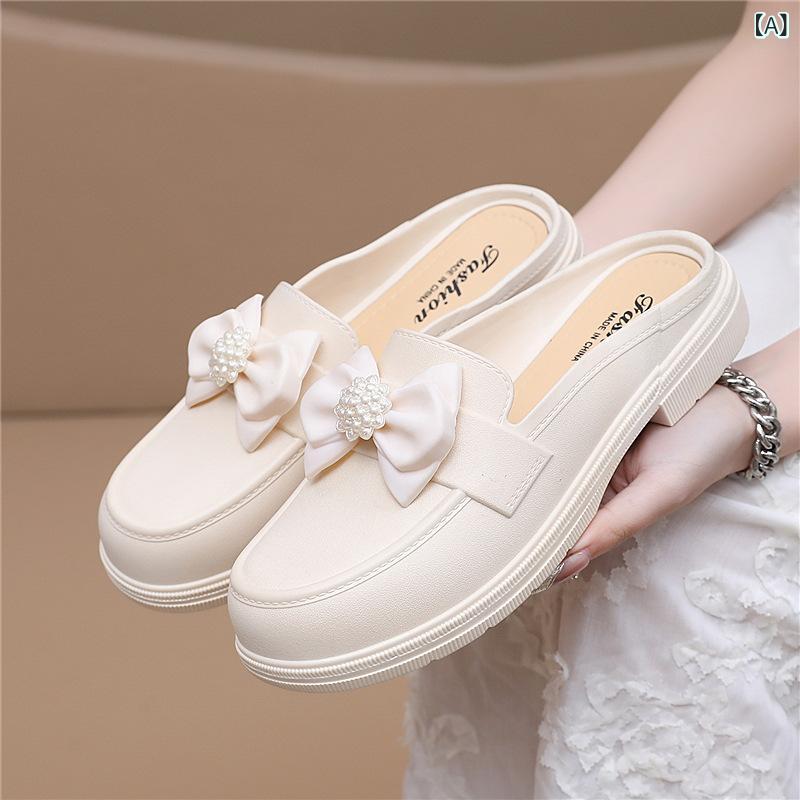 【予約販売5~12営業日での発送】サンダル レディース 婦人靴 バタフライ 蝶結び PVC フラット ローヒール スリッパ ミュール つっかけ ぺたんこ 歩きやすい 履きやすい 普段使い 滑り止め 軽量 アイボリー 黒 ブラック 抹茶色(x2)