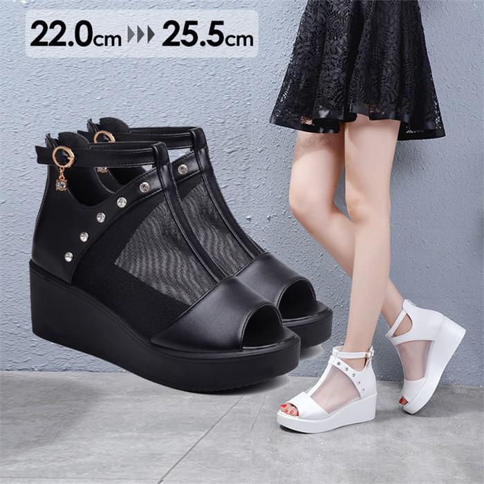 22.0-25.5cm ブーツサンダル 通気性 メッシュブーツサンダル 厚底 レディース サマーブーツ 夏ブーツ 厚底サンダル 美脚 おしゃれ オープントゥ サンダル ウェッジソール ハイヒール 通気性 メッシュ ショートブーツ ヒールサンダル 後ファスナー付き カジュアル n2007c6c6n1