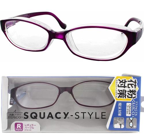 名古屋眼鏡 花粉メガネ 目立たない 曇らない おしゃれ スカッシー スタイル パープル レギュラー (NEW 曇り止めコート仕様) 8732-03