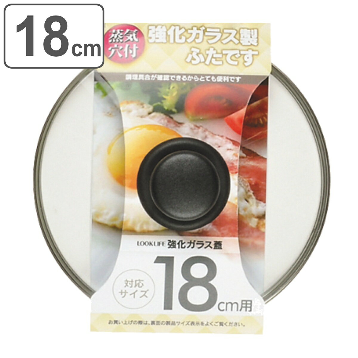 丈夫な強化ガラス製でお料理がよく見える18cm用の蓋フライパン蓋 18cm用 強化ガラス製 鍋蓋 LOOK LIFE ( フタ フライパンふた カバー ガラス蓋 ガラスふた 18cm 18センチ フライパンの蓋 鍋ふた 調理器具 キッチン用品 )