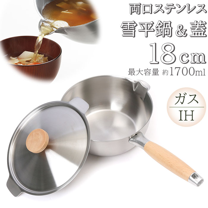 片手鍋の決定版!移す時にこぼれや伝いもれのストレスがない鍋 毎日の料理で何かと出番の多い雪平鍋をもっと使いやすくしました。煮汁が対流しやすい程よい丸さのボディアイカタ 両口ステンレス雪平鍋18cm フタ付きセット aikata 【ポイント15倍/送料無料】【p1029】