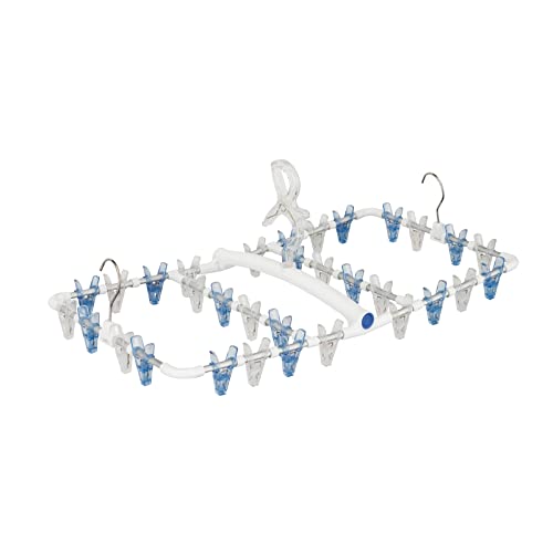 ホワイト ブルー/65×36×25cm/PL-02R・PatternName:角ハンガー 32ピンチ・パッケージ個数:1・本体サイズ:約25×65×36cm・本体重量:約600g・素材・材質:(本体)アルミ・ポリプロピレン、(フック・ピンチ)ポリカーボネート、(スペーサー)ポリプロピレン、(ピンチバネ)鋼線、(補助フック)ステンレス・原産国:中国●毎日使いに便利な「頑丈」で「たくさん干せる」洗濯用角型ハンガーです。 ●ピンチ部分のつりヒモがないため、ピンチを開閉するときにからまず、小さなイライラを解消! ●また強くて割れにくい素材で作られているので、風が強い日でも洗濯物を落とさず安心して干せます。 ●低竿対応なので、マンションやアパートのベランダなどでも使い勝手が良いです。 ●一定間隔でピンチが並んでいるので、風などで洗濯物が密集してしまうことがないため乾きやすいです。 ●外側にタオルや大きい物を吊るせば、目かくし干しもできるのがうれしいです。 ●コンパクトに折りたためるので、省スペースで収納できるのがうれしいです。 ●クリアカラーのピンチでお部屋に馴染む、女性にうれしい実用性とデザイン性を合わせ持ったアイテムです。