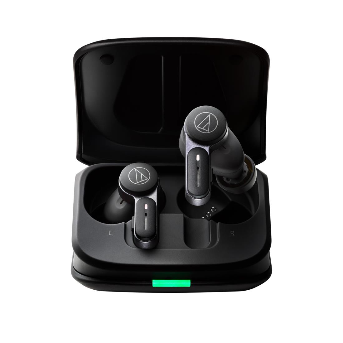 ハイレゾワイヤレスで高音質&イコライザー搭載:ハイレゾワイヤレスで高音質が聴ける、LDACコーデックに対応。最大 96kHz/24bit 伝送に対応し、広帯域・高ダイナミックレンジを実現。原音に近い音質で再生することができます。また、LDAC以外のAAC/SBCコーデックにも対応しており、幅広い機種に対応しております。上位モデル『ATH-TWX9』の設計思想を継承したφ5.8mm ドライバーを採用。妥協のない音質とノイズキャンセリング効果の体感レベルを高めることにより、静寂空間の中で、伸びやかな高域や粒立ちの良い繊細な音の鳴りを体験できます。また、マイク部分には小型の高性能MEMS(Micro Electro Mechanical Systems)マイクをイヤホン筐体の2か所に配置。その2つのマイクを利用したビームフォーミングマイク技術により、話者の口元に向かって指向性を持たせることで、周囲の雑音が多い環境でも通話相手に明瞭な声を届けることができます。ハイブリッドデジタルノイズキャンセリング技術とヒアスルー機能:左右のイヤホンに、それぞれ 2 基ずつ用意されたノイズキャンセリング用小型 MEMS マイクが周りの環境ノイズを拾い、高精度ノイズキャンセリングプロセッサーに伝送。独自開発のノイズフィルター設計によりノイズキャンセル性能を最大限に高め、不要な雑音を打ち消します。 騒音のある環境下でも仕事に集中したり、コンテンツに没入したり、思いのままの時間を過ごすことができます。また、イヤホンを着けたまま、周囲の音声をマイクで取り込みつつ音楽を聴くことができます。音楽を流しながら散歩やスポーツ、家事やテレワークをする際や、電車やバスでの通勤・通学時に周囲の音を気にしながらリスニングしたいときに便利です。小型ボディで安定した装着感:耳からイヤホンが飛び出さないコンパクトサイズで、耳の小さな女性でも無理なく使用できます。耳のくぼみへ滑り込み、自然に装着できる人間工学に基づいた設計により、疲れにくい装着感と耳から外れにくい安定感を両立しています。また、遮音性にも優れ、音漏れしにくい仕様となっております。JIS 保護等級 IPX4 相当の防滴仕様。(イヤホンのみ) 装着感にこだわって設計された本製品は、フィッティングをさらに高めるために2種類のイヤピースを付属しています。長時間の使用でも耳への負担が少ない、しっとりと柔らかな傘を持つ「ソフトイヤピース」と、フィッティングの保持を目的に設計された、傘の部分にハリのある「ノーマルイヤピース」をそれぞれ XS、S、M、L の4サイズ付属しています。最大約24時間再生:イヤホンと充電ケースが満充電状態であれば、ノイズキャンセリング ON 時、イヤホン単体連続約 6.5 時間、充電ケース併用で最大約 20 時間の再生ができます。ノイズキャンセリング OFF 時は、イヤホン単体最大約 7.5 時間、充電ケース併用で最大約 24 時間の再生が可能です。急速充電に対応。約15分の充電で、約60分間の使用ができます。充電を忘れても、別の用事を済ませている間にヘッドホンの準備が整います。ワイヤレス充電 Qi 対応。サウンドスケープ機能&プライベートタイマー機能:オーディオテクニカのマイクで収録した、仮眠や落ち着きを促すリラックス効果の高い自然のサウンドをはじめ、集中力を高めるマスキングノイズ、リフレッシュや瞑想に適したヒーリングサウンドなどが専用アプリで再生できます。まるで森の中で仕事をしたり、海辺で寝そべっている感覚になったりと、気持ちの面での“整う”をサポートします。イヤホンというユーザー”だけ”の密閉空間にタイマーを設定することで、自分だけに音を知らせてくれます。仕事への集中、お昼寝などの束の間の休息といった時間に対するコントロールもイヤホンで行えます。技適マーク認証済み商品(周波数帯:2.4GHz帯)