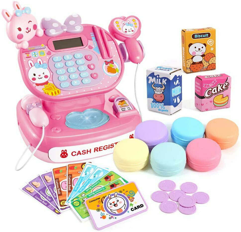●商品概要 ■生産国 China お店屋さんごっこが楽しくなっちゃう本物そっくりのレジスターが登場! ハンドスキャナーで商品をピッピッ! ボタンを押すと光ります。電卓機能が内蔵されているので、計算もできます。お金パーツやカギもついていてます。家で親子一緒に遊びして、子供たちのいろんなニーズに応じて、異なる指導を与えて、子供たちに遊びながら学ばせます。子供たちの考え能力、創造力、および知恵などの発達を刺激します。 ●超豪華おままごとセット内容 レジスター本体*1 、ショッピングカート、アイスクリーム*3、ビスケット*1、ケーキ*1、ミルク*1、紙幣*8、銀行カード*1、マカロン*6、コイン*8。おすすめは年齢を使います:2歳以上。 ●想像力&コニュニケーション能力を伸ばす知育玩具 おままごとは普段の生活で行われる家事のやり取りを真似にすることから始まります。お子様自分で想像しながら遊ぶことを通じて、想像力が豊かになります。一人遊びとは違い、お友達や兄弟など自分以外の人との関わり合いを通して、会話が上達し、コニュニケーション能力を高めることができます。 ●安全素材でママ安心 高品質な素材が採用され、安全無毒、お子様の健康を守ります。耐久性も優れています。危険な角にはすべて丸みを付けた、やさしい仕上がり。小さいなお子さまでも、安心して遊んでいただくことができます。そして、つかみやすい大きさで、誤飲の危険がありません。 ●計算の勉強 お店屋さんになり、セットされているミルクやデザートをレジでピッ!ピッと商品をスキャンしたり、商品の合計額を計算したり、シールを小物や他のものに貼って、、意外と脳や指先を使う作業になり脳に良い刺激となります。お子様が本来持っている「創造力」「考える力」「五感」「好奇心」を刺激し、育むことができる知育玩具。また、お店屋さんごっこを遊びしよう。遊びながら学習でき、お子様の知育に役立つおもちゃです。 ●男の子と女の子が遊べるおままごとおもちゃ 女の子のおもちゃだけでなく、男の子も夢中になります!「ままごと」は想像力を豊かにし、社会性を学び、遊びを通じて子供の心を成長させる。また、友達と親子の交流も深めることができます。出産祝いの贈り物、お誕生日、クリスマス、ハロウィンや入園祝い、入学祝いのプレゼントやギフトにもピッタリです。男女を問わず幼児受けの良い玩具なので、孫にプレゼントもオススメです。おままごとには最適です。お子様の成長を自然に促す遊びの豊かさにも優れています.