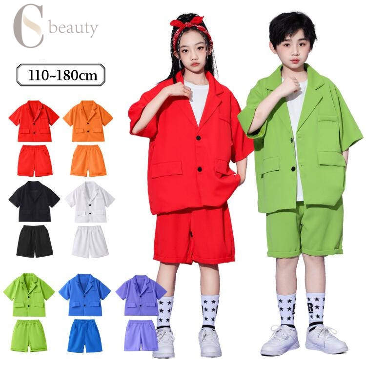 目立つカラー使いで舞台映え抜群・7色 スーツセット ダンス衣装 キッズ ロック ヒップホップ セットアップ 女の子 男の子 ファッション スーツ ジャケット 短パン ショートパンツ K-POP HIPHOP 韓国 ストリート 子供服 演出服 練習着 発表会 応援団 団体服 原宿系 110-180