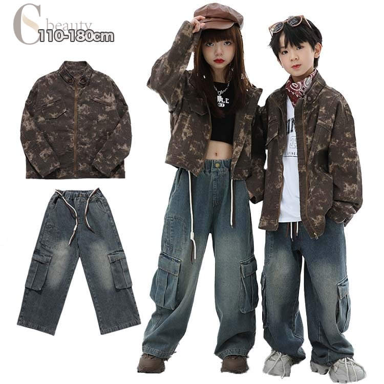 単品販売 HIPHOP ダンス衣装 110-180cm ジャケット 長袖 パンツ ロング丈 おしゃれ 練習着 派手 ステージデニム ダンス衣装 キッズ 単品販売 ブラウン ヒップホップ キッズ 衣装 ジャケット 厚手 迷彩 デニムパンツ 青 春秋冬 子供服 男の子 女の子 ストリート 舞台 演出服 ダンスウェア 発表会 イベント かっこいい