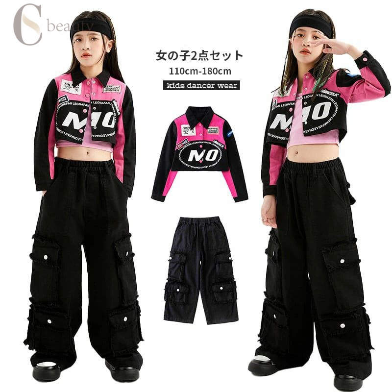 子供ダンス衣装 団体イベント 2点セット jazz hiphop 女子 キッズキッズダンス 女の子 2点セット 子供ダンス衣装 JAZZ キッズ HIPHOP ジャズ ジャケット パンツ チアガール チアダンス へそ出し 長袖 長ズボン 練習着 演出服 イベント ステージ衣装 ダンスウェア キッズ 舞台服 110-180CM