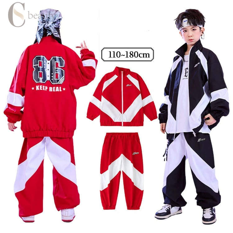 チームお揃い ダンス発表会 子供 男の子 女の子 ダンス衣装 応援団 演出服 団体服 カジュアル 110-180cmブラック レッド 子供服 キッズダンス 衣装 女の子 男の子 ダンス発表会 ストリート 韓国 子供服 ジャケット 長袖 ズボン ダンスパンツ 子供服 ダンス 衣装 ヒップホップ キッズ ダンス衣装 セットアップ ガールズ ヒップホップ hiphop kpop 子供 女の子 スポーツウェア
