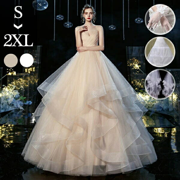 S-2XL 花嫁 ウェディングドレス Aライン キャミソール ビスチェ花嫁 ウェディングドレス Aライン キャミソール ビスチェ ペプラムスカート フリルスカート 白ドレス ワンピース プリンセス 結婚式 二次会 披露宴 前撮り 後撮り 撮影用 フォトウェディング 小さいサイズ ロング ロングドレス エレガント 優雅 シャンパン dp046t2t2g5