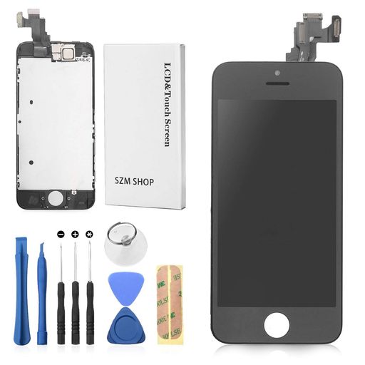 SZMiPhone5S液晶パネルフロントパネル交換修理用スクリーンタッチパネル交換パーツ修理パーツ工具付属(スピーカー+フロントカメラ付き)ホームボタン無し(5S黒)