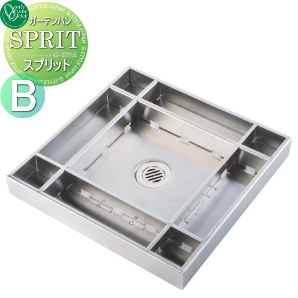 輝くステンレスの鏡面で区切られた、 スタイリッシュなガーデンパン。 お好みの素材やオプションパーツで、 オリジナルのコーディネートをお楽しみください。【無料★特典対象】 ガーデンパン 水受け オンリーワンクラブ スプリット タイプB KS3-C116PB 立水栓 パン 水受け ガーデニング 庭まわり 屋外 オンリーワン エクステリア