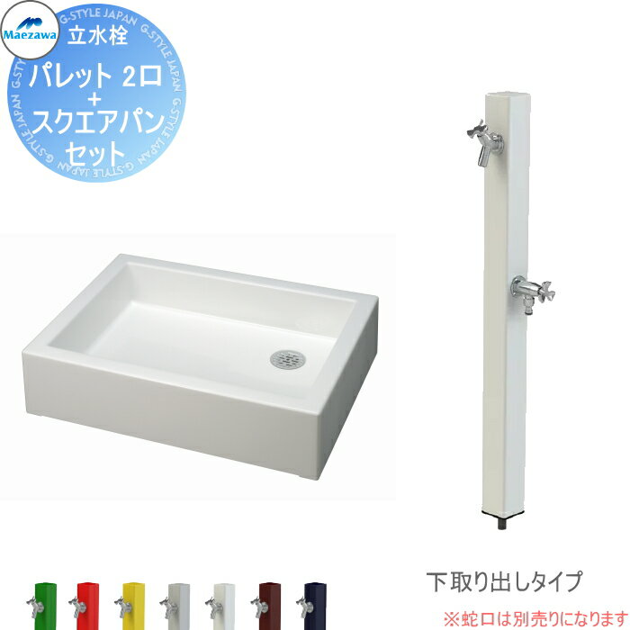 おしゃれ 立水栓 おすすめ 見る喜び・使う楽しさ、見る楽しさ・使う喜び【無料★特典対象】 MELS(メルズ) パレットシリーズ EX柱 2口水栓柱+スクエアパンセット 7カラー 下取り出しタイプ HI-A16WR×940・SP-USQ550 立水栓セット 水栓柱 前澤化成 マエザワ おしゃれ かわいい 蛇口 ガーデニング 庭まわり 屋外 水道 水廻り