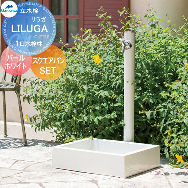 おしゃれ 立水栓 おすすめ 唯一無二 そんな自分だけの空間造り【無料★特典対象】 MELS(メルズ) 丸形アルミ立水栓 リラガシリーズ 1口水栓柱+スクエアパンセット パールホワイト 下取り出しタイプ HI-16T×960+SP-USQ550T 立水栓 水栓柱 前澤化成 マエザワ おしゃれ かわいい 蛇口 ガーデニング 庭まわり 屋外 水道