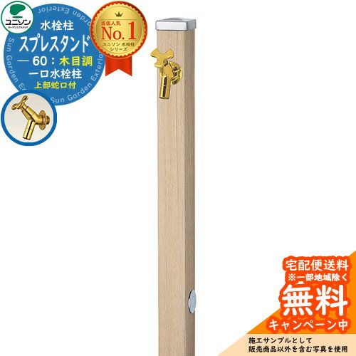 木目調が美しい存在感のある水栓柱!【無料★特典付】立水栓 水栓柱 ユニソン スプレスタンド60 左右仕様 蛇口1個セット(ゴールド) 木目調タイプ 一口水栓柱 参考写真:シャインチーク ウォータースタンド Spre ステンレス 屋外 外で使う 水道 おしゃれ ナチュラル 庭 玄関