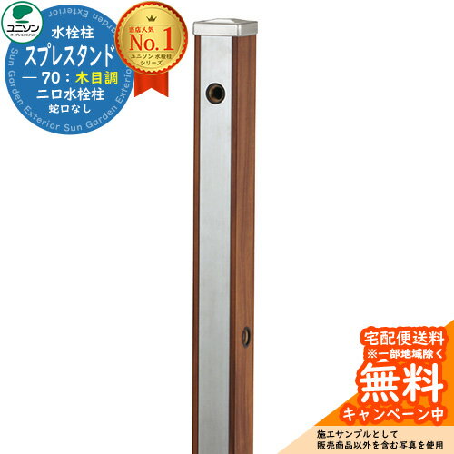 高級感のある木調カラーが魅力的な水栓柱!【無料★特典付】立水栓 水栓柱 2口 ユニソン スプレスタンド70 蛇口無し 木目調 二口水栓柱 参考写真:ウッドブラック ウォータースタンド Spre ステンレス 屋外 外で使う 水道 おしゃれ ナチュラル 庭 玄関 水回り