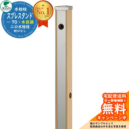 高級感のある木調カラーが魅力的な水栓柱!【無料★特典付】立水栓 水栓柱 2口 ユニソン スプレスタンド70 蛇口無し 木目調 二口水栓柱 参考写真:ウッドベージュ ウォータースタンド Spre ステンレス 屋外 外で使う 水道 おしゃれ ナチュラル 庭 玄関 水回り