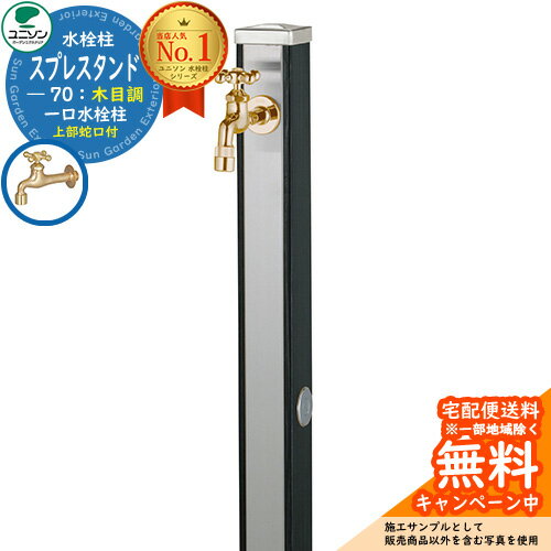 高級感のある木調カラーが魅力的な水栓柱!【無料★特典付】立水栓 水栓柱 ユニソン スプレスタンド70 蛇口1個セット(シルバー) 木目調 一口水栓柱 全3色 ウォータースタンド Spre ステンレス 屋外 外で使う 水道 おしゃれ ナチュラル 庭 玄関 水回り