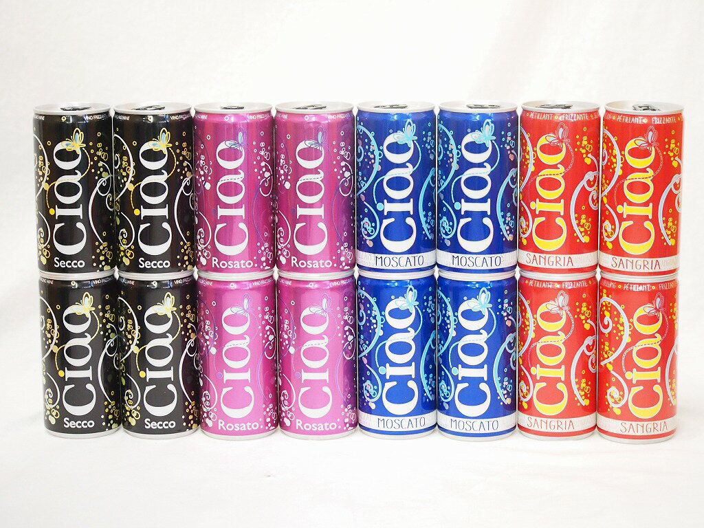 お誕生日 贈り物 御進物 ギフト包装 熨斗 メッセージカード無料飲みきりイタリアワイン缶16本セット(チャオ サングリア やや甘口微発泡赤ワイン チャオ モスカート 甘口微発泡白ワイン チャオ ビアンコ 辛口微発泡白ワイン チャオ ロザート やや辛口微発泡ロゼワイン) 200ml×16本