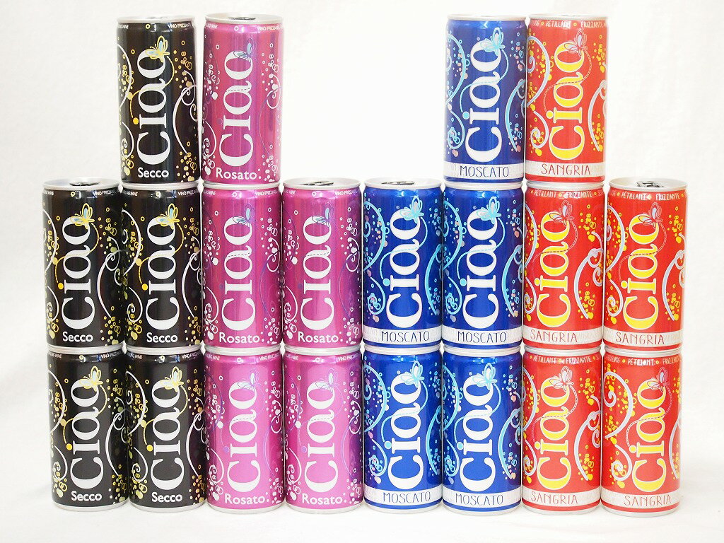 お誕生日 贈り物 御進物 ギフト包装 熨斗 メッセージカード無料飲みきりイタリアワイン缶12本セット(チャオ モスカート 甘口微発泡白ワイン チャオ ビアンコ 辛口微発泡白ワイン チャオ ロザート やや辛口微発泡ロゼワイン) 200ml×12本
