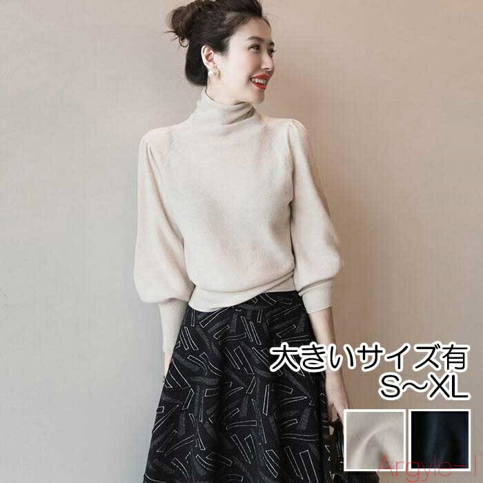 【送料無料】 大きいサイズ【送料無料】パフスリーブ トップス ニット セーター タートルネック レディース エレガント きれいめ カジュアル おしゃれ 長袖 大人 可愛い ランタンスリーブ フェミニン