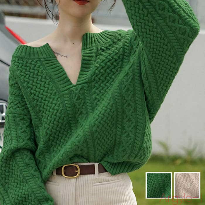 【送料無料】【送料無料】トップス レディース ニット セーター カットソー カジュアル キーネック おしゃれ 長袖 可愛い Vネック ゆったり オーバーサイズ フェミニン オフショルダー レ