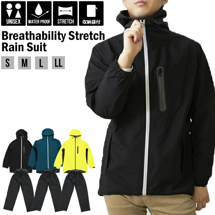 雨具 アウター 上下セット ボトム ズボン レインスーツ メンズ レディース 男女兼用 ユニセックス透湿ストレッチレインスーツ MPSR-S雨具 アウター 上下セット ボトム ズボン レインスーツ メンズ レディース 男女兼用 ユニセックス ブラック ブルー イエロー S M L LL