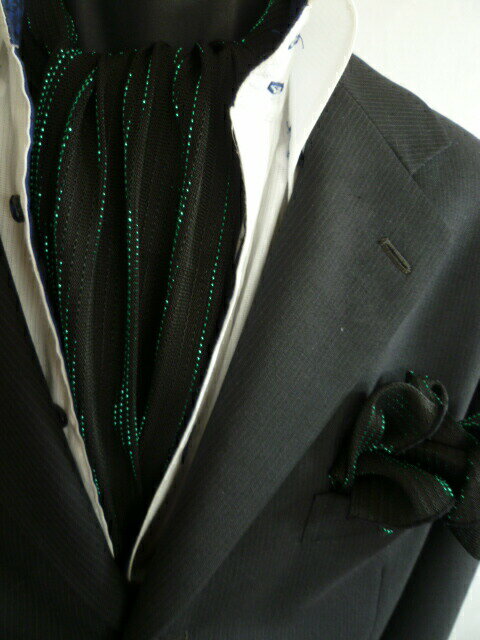 ☆アスコットネクタイ ・サイズ 縦136センチ×幅14センチ ・材 質 レーヨン ・色 ブラック/グリーンラメ ・商品説明 写真と多少の色の異なりはご了承下さい ☆ポケットチーフ ・サイズ 28センチ正方形 ・材 質 レーヨン ・色 ブラック無地 /グリーンラメ ・商品説明 写真と多少の色の異なりはご了承下さい。結婚式・パーティにもってこいのオシャレアイテム☆ お買い得になってます!