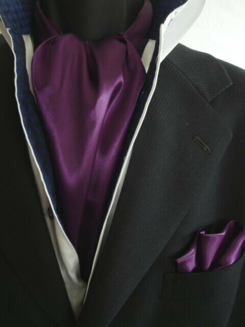 ☆アスコットネクタイ ・サイズ 縦128センチ×幅14センチ・センター幅5.5センチ ・材 質 ポリエステル100% ・色 光沢のあるパープルの無地 ・商品説明 写真と多少の色の異なりはご了承下さい。 ☆ポケットチーフ ・サイズ 23cmの正方形 ・材 質 ポリエステル100% ・色 パープルの無地 ・商品説明 写真と多少の色の異なりはご了承下さい。結婚式・パーティにもってこいのオシャレアイテム☆ お買い得になってます! 同色で記載しておりますが、チーフのお色変更OKです!
