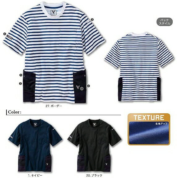 【メール便対応可】綿冷感素材【作業服】村上被服 VILEA(ビレア)ユーティリティ半袖Tシャツ 715【530】