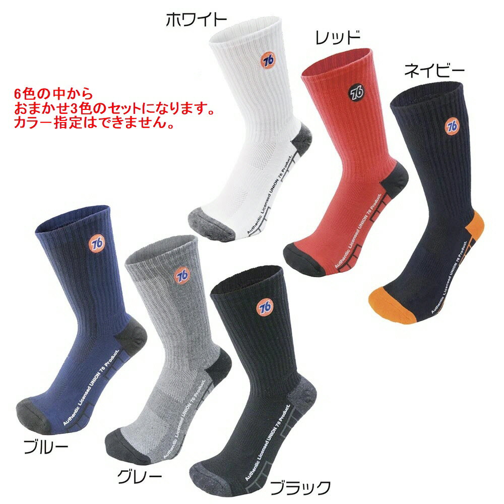 76ルブリカンツのおしゃれソックス【作業・カジュアルソックス】FUJITE(富士手袋工業)UNION 76 ハイパークッション 先丸レギュラー丈 ソックス 3足組 FT-76200【410】