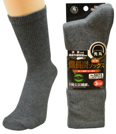 消臭効果!遠赤外線放射効果【作業・カジュアルソックス】FUJITE(富士手袋工業)紀州備長炭ソックス 先丸 3足組(3P)5873【410】
