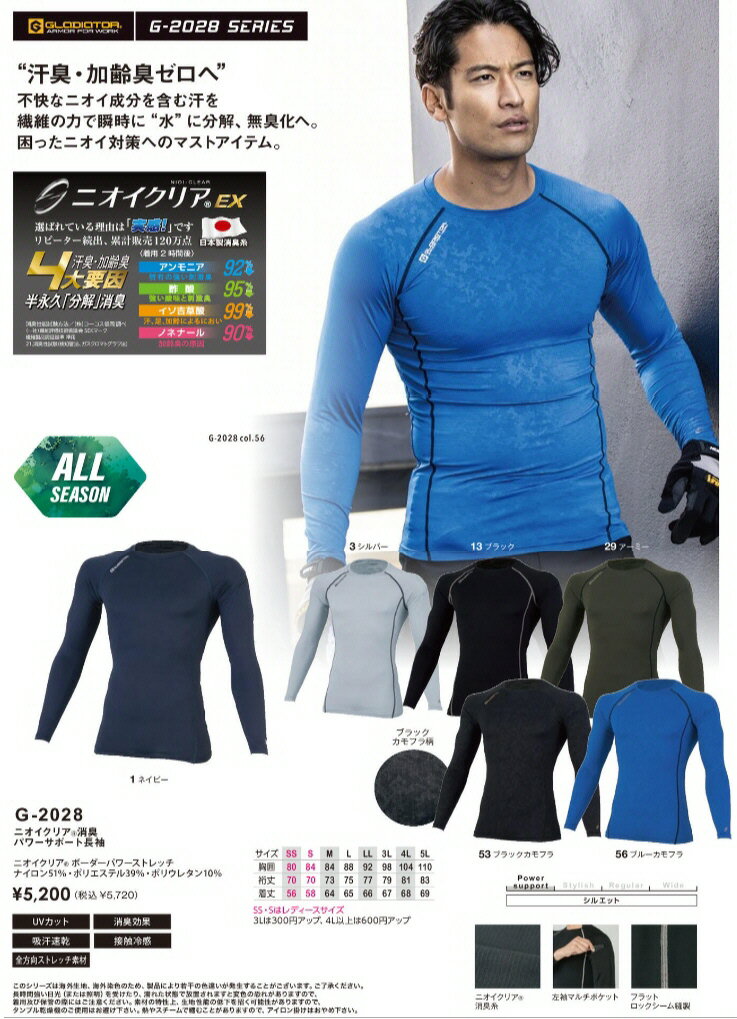 【メール便対応可】消臭タイプのコンプレッション【取り寄せ対応】【作業服】CO-COS(コーコス信岡)GLADIATOR ニオイクリア 消臭 パワーサポート長袖フィットシャツ 通年商品 G-2028【430】
