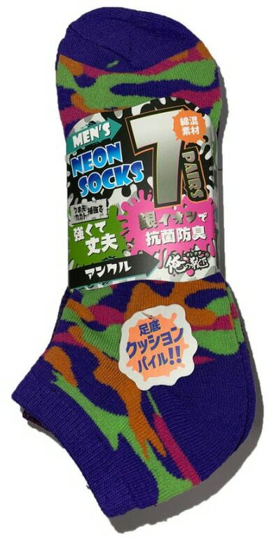 強くて丈夫!銀イオン加工で抗菌防臭【作業・カジュアルソックス】福徳産業(ふくとくさんぎょう)俺の靴下 先丸 ネオン柄ソックス アンクル丈 7足組 4300【410】