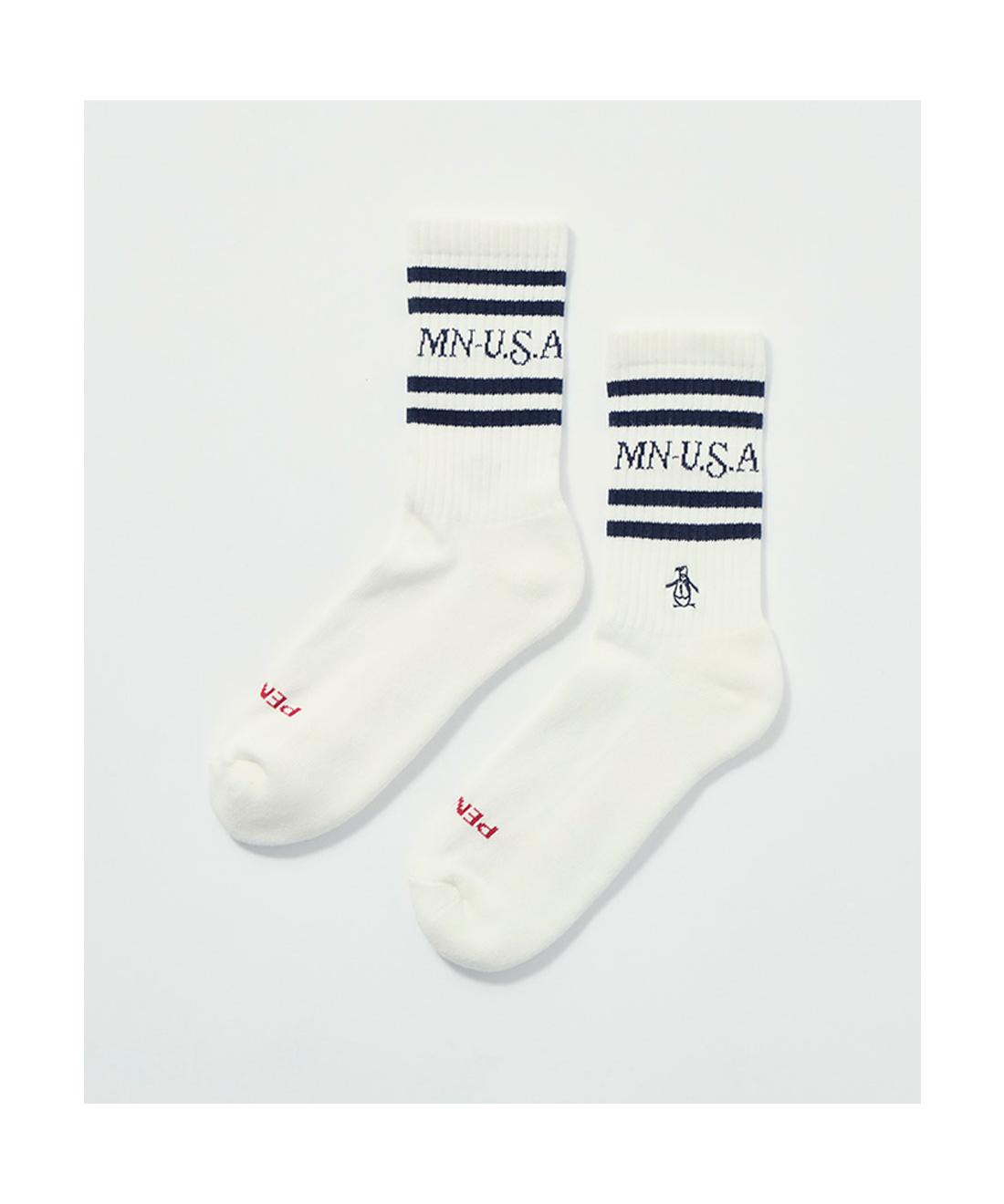 ・はき口のラインとロゴをジャカードで表現した、スポーティなソックス。・タウンユースからゴルフシーンまでタイムレスにコーディネートできるユーティリティアイテムです。・通気性の良い素材を使用しているため、汗ばむシーンでもドライで快適なはき心地。・底を厚みのあるパイル編みにすることで足への負担を軽減します。#ペンギンバイマンシングウェア#Penguin by Munsingwear【メーカーサイズ寸法(実寸)】F : 高さ:18.5cm 採寸情報:商品詳細画面のサイズ表には、実際の商品を採寸した「実寸」を記載しています。 採寸単位(cm)- ※生地の特性によって多少の誤差が生じる場合がございます。ご了承ください。 ※補足※ 商品に付いている洗濯タグに記載の「メーカー対応サイズ」とは異なりますのでご注意ください。 ただし、靴の場合は実寸ではなく、対応サイズのみの記載となることがあります。 注文後の変更手続きや返品対応に関しては こちら をご確認ください。 メーカー希望小売価格はメーカーカタログに基づいて掲載しています 素材名:素材:品質:綿/ポリエステル/その他 生産国:日本 よく一緒に購入されている商品ペンギン バイ マンシングウェア Pengui18,700円類似商品はこちらペンギン バイ マンシングウェア Pengui5,280円ペンギン バイ マンシングウェア Pengui2,750円ペンギン バイ マンシングウェア Crew n14,300円ペンギン バイ マンシングウェア sweat 14,300円ペンギン バイ マンシングウェア Bucket8,250円ペンギン バイ マンシングウェア Utilit16,500円ルコックスポルティフ ゴルフ シーズンモチーフ1,650円ペンギン バイ マンシングウェア Pengui7,150円ペンギン バイ マンシングウェア GOLF T8,800円