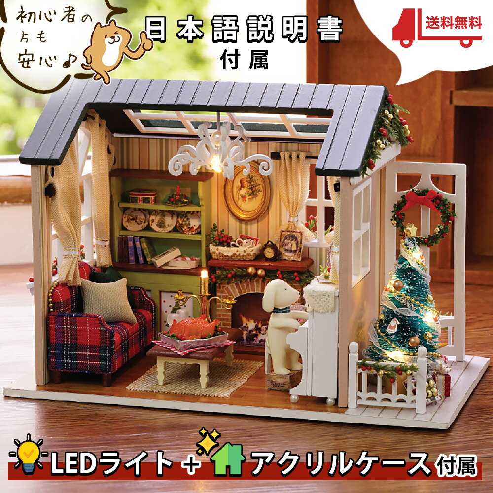 送料無料 ドールハウス ミニチュア キット DIY 木製 家具 1/24 クリスマス 日本語説明書 アクリルケース DIY おもちゃ 子供 模型 手芸 ハンドメイド 手づく【P5倍!!】最短当日出荷◆ ドールハウス ミニチュア 手作りキットセット 【日本語説明書】 1/24 小型 初心者 | 犬 と 暮らす部屋 | LEDライト+アクリルケース (クリスマス パーティー)