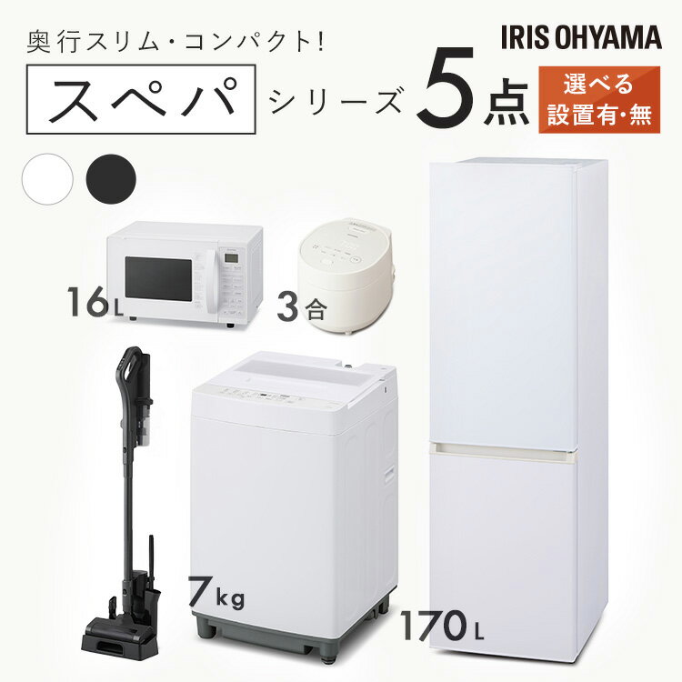 家電セット 新生活セット 家電 セット 冷蔵庫 洗濯機 ホワイトレーベル 炊飯器 掃除機 クリーナー 新生活 一人暮らし アイリスオーヤマ【新品】【設置サービス対象】\スペパシリーズ 家電5点セット/家電セット 冷蔵庫 170L 洗濯機 7kg オーブンレンジ 16L 炊飯器 コードレス掃除機 一人暮らし 電子レンジ アイリスオーヤマ * & 新生活 【HS】