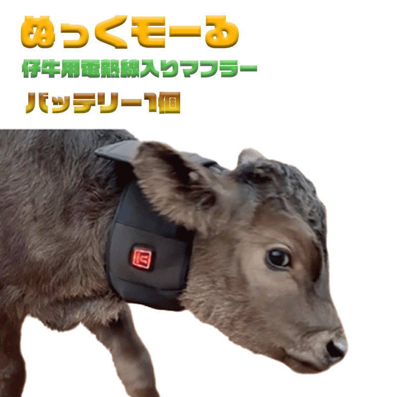 大切な仔牛の健康と命を守る服。体温維持をサポートする電熱線入りマフラー「ぬっくモーる」。手洗い洗濯可能、温度調節、サイズ調節、濡れても安心、自由に動けるバッテリー式。仔牛の防寒具 USIMO ぬっくモーる 仔牛用電熱線入りマフラー U-W01 体温維持 保温効果 充電式 バッテリーセットあり 牛の寒さ予防 牛の防寒 うしも ウシモ オオツキ
