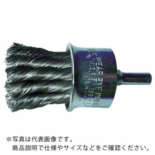 特長:ブラシにヒネリを加えているため、より強いクリーニングが可能米国の国家規格(ANSI)に基づいて、破壊試験を実施し、最高回転数を設定しています。ノットタイプなので重研磨に最適高速回転対応安定したバランス規格品のため短納期RoHS指令(2011/65/EU)、RoHS指令((EU)2015/863)対応製品用途:カーボン等のクリーニングや押出型金型及び工具のクリーニングに。スケールとフラグの除去凹部、菅内部のクリーニングに。ゴムとプラスチックのバリ取りに。溶接部のクリーニング仕様:線径(mm):0.50毛材:ステンレス外径(mm):22毛丈(mm):22軸長(mm):18軸径(mm):6最高使用回転数(rpm):20000全長(mm):66取付可能工具:ストレートグラインダー・ドリル・自動機材質/仕上:SUS:ステンレスワイヤー(ブラシ材質)注意:使用目的(用途)に合った機械の種類とパワーブラシのタイプを選んでください。適合機種以外のものを使用されたり、使用用途以外での使用は事故の発生につながり危険です。使用用途以外では使用しないでください。パッケージ・ラベル・カタログ・その他、関連書類に印刷された最高許容回転数(周速度)を確認の上、許容範囲内でご使用ください。これを超えて使用することは絶対に避けてください。パワーブラシを稼働させる場合は、必ず安全な作業のために、ブラシ保護カバーの装着と手袋、安全帽、防塵密着型保護メガネ、マスクを着用してください。一般にパワーブラシの稼働においては、バリ、スケール、汚れ、スラグ等がかなりの力でフィラメント(線材破片)と共に飛散しますので、引火、爆発しやすいもの、傷つきやすいものは遠ざけてください。また研削粉が直接、手足等に当たらないよう肌をださない服装で作業をしてください。ワイヤーブラシのフィラメント(線材破片)や、研削粉が飛散した場合、危険ですので作業中は作業周辺(ブラシから15m以内の地点)の人々も保護メガネ・防護服を着用してください。(作業者以外の周辺の人々に効する配慮として、カーテン等の設置、もしくは人払い、遮断指示を行ってください。) ●代表画像について 商品によっては、代表画像を使用している場合がございます。 商品のカラー、サイズなどが異なる商品をイメージ画像として 使用させて頂いている場合がございます。 必ず、商品の品番と仕様をご確認のうえ、ご注文お願いいたいます。 ●北海道・沖縄・離島・一部地域の送料について 別途追加で送料がかかる場合がございます。 送料がかかる場合は、メールにて送料をご連絡させて頂き、 お客様にご了承頂いてからの手配となります。 ●お買上げ明細書の廃止について 当店では、個人情報保護と環境保護の観点から同封を廃止しております。 お買上げ明細書が必要な場合は、備考欄に「お買上げ明細必要」と 記載お願いいたします。 当店からの出荷の場合は、同封にて発送させて頂きます。 (※メーカー直送の場合は、PDFデータをメールさせて頂きます。) 注意事項 ※商品名に【2個セット】等、数量の明記がない場合は1個での販売となります。