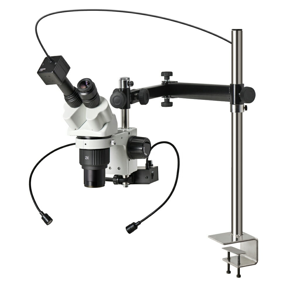 商品説明 1× / 2×切り替え式対物レンズの価格を抑えた実体顕微鏡と、価格と性能を両立した300万画素USBカメラのセットです。フレキシブルアームのスポット照明付き。カメラを顕微鏡に取り付けるアダプターは、肉眼で覗いたように表示するタイプです。机などにクランプで取り付ける頑丈なロングアームにより、作業スペースを確保したまま使用時には引き出し、使用後は端へ避けるといった使い方が可能です。通常3~4日以内に発送します。 視野 顕微鏡 20/10mmφ カメラ 20/10mmφ 倍率※1 顕微鏡 10/20× カメラ 21/41倍 作動距離 顕微鏡 84mm カメラ 84mm ※ スペックは計算値です。 ※1. 24型ワイドモニター(解像度1920×1080)使用時 取扱説明書ダウンロード