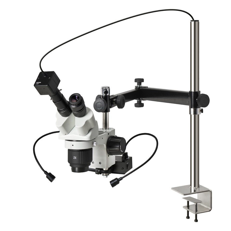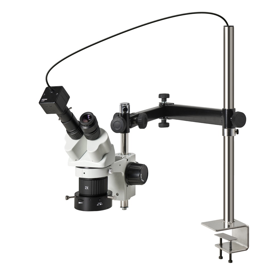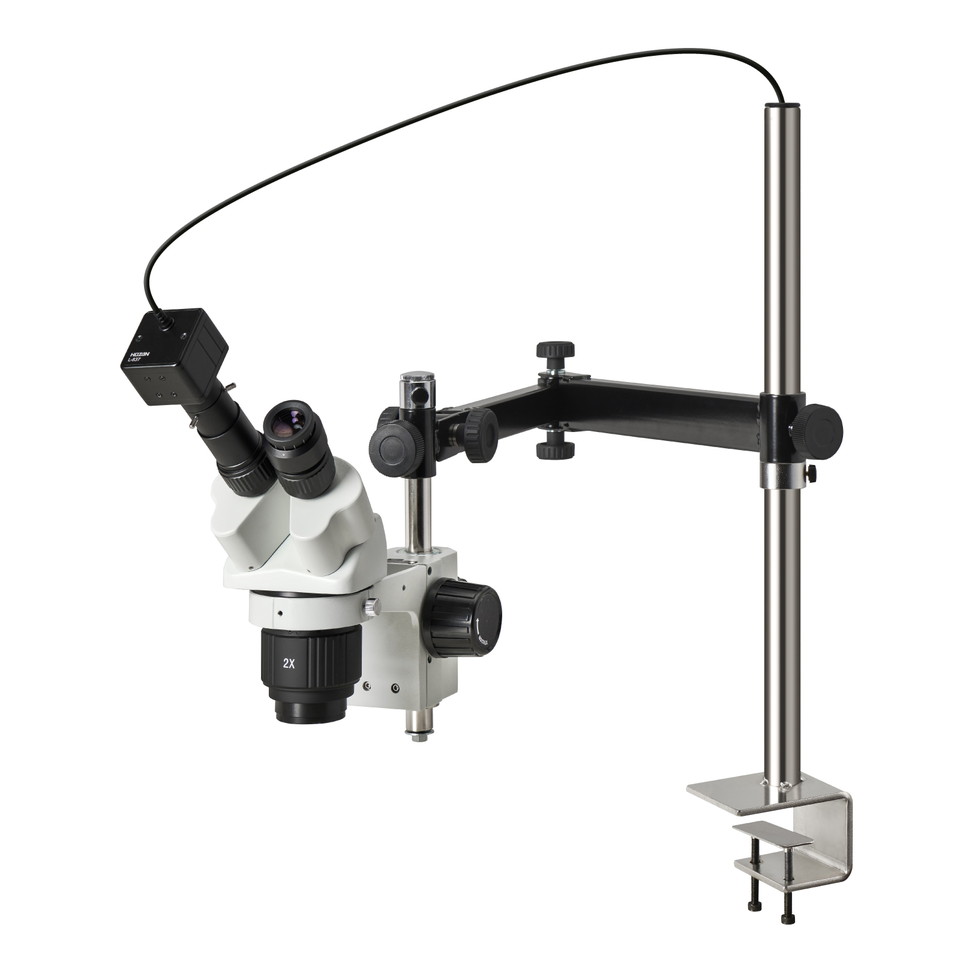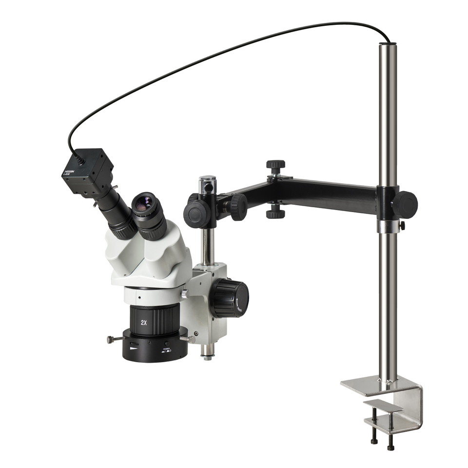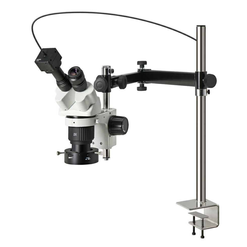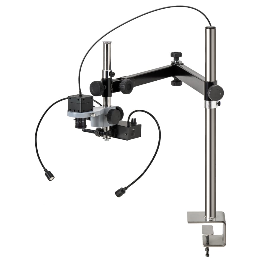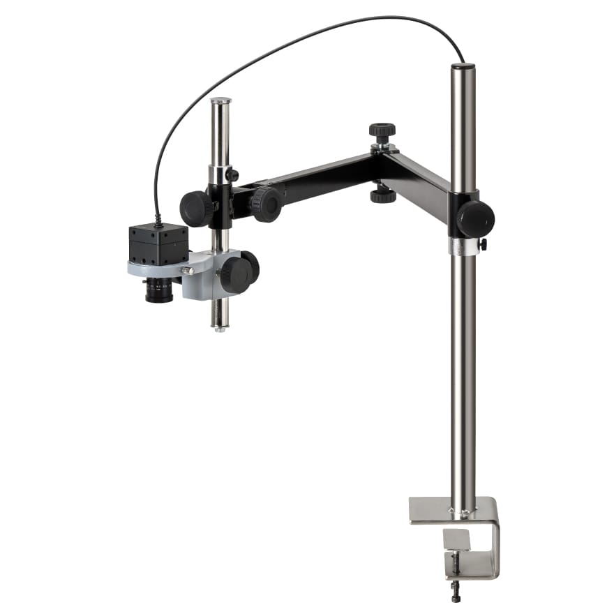 商品説明 1× / 2×切り替え式対物レンズの価格を抑えた実体顕微鏡と、堅牢で取付ネジを多数備えた500万画素USBカメラのセットです。フレキシブルアームのスポット照明付き。カメラを顕微鏡に取り付けるアダプターは、肉眼で覗いたように表示するタイプです。机などにクランプで取り付ける頑丈なロングアームにより、作業スペースを確保したまま使用時には引き出し、使用後は端へ避けるといった使い方が可能です。通常3~4日以内に発送します。 視野 顕微鏡 20/10mmφ カメラ 20/10mmφ 倍率※1 顕微鏡 10/20× カメラ 26/52倍 作動距離 顕微鏡 84mm カメラ 84mm ※ スペックは計算値です。 ※1. 24型ワイドモニター(解像度1920×1080)使用時 取扱説明書ダウンロード
