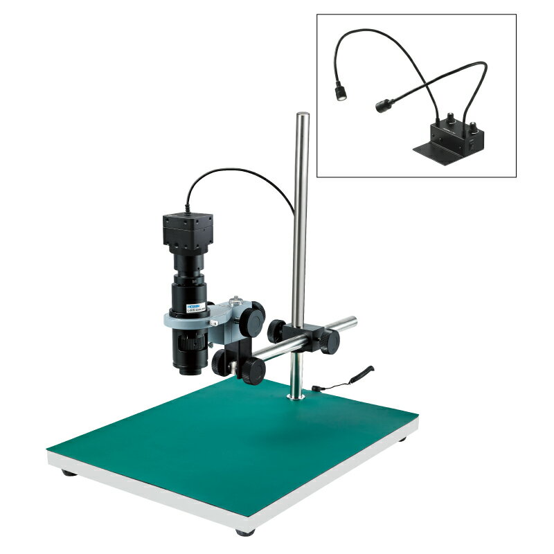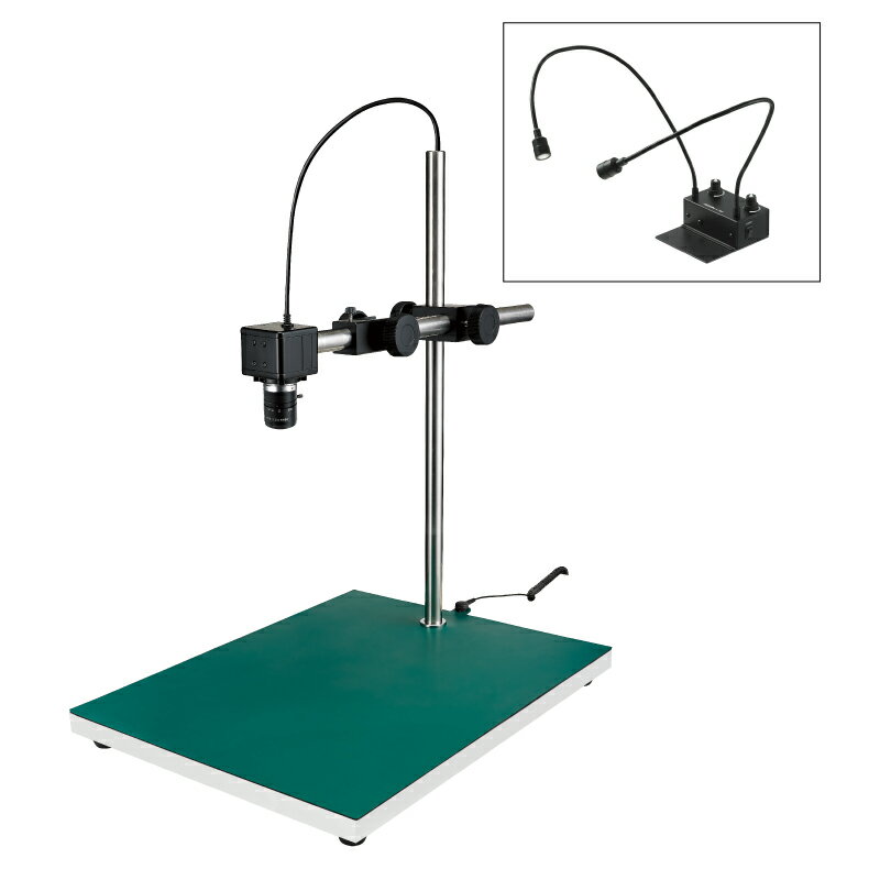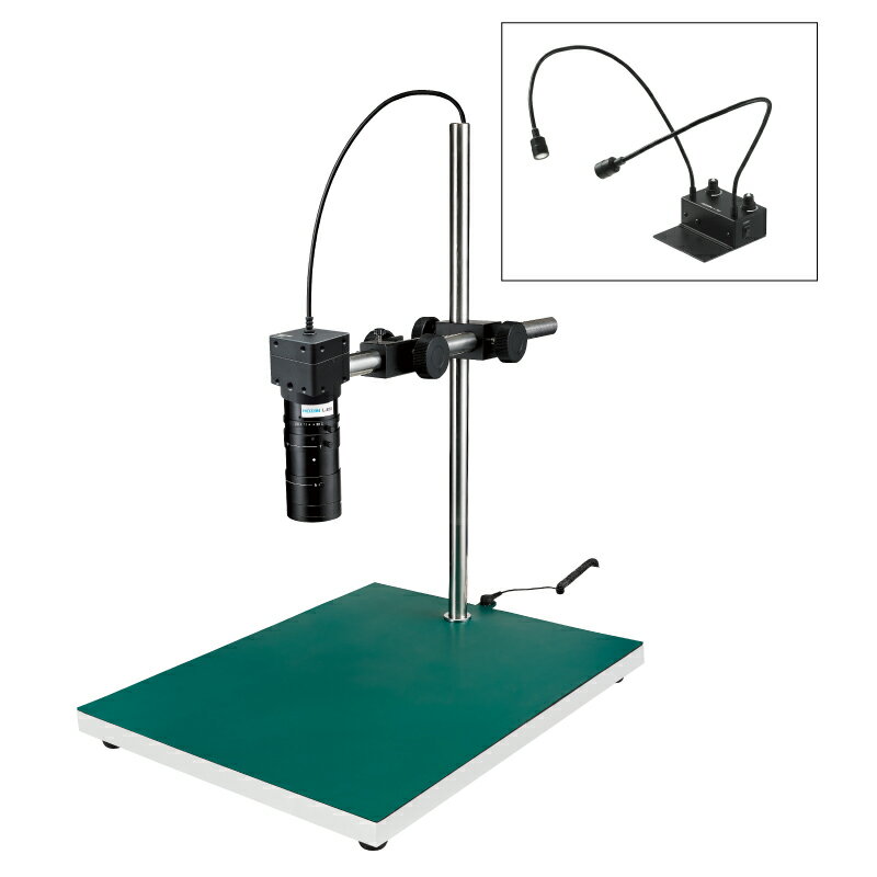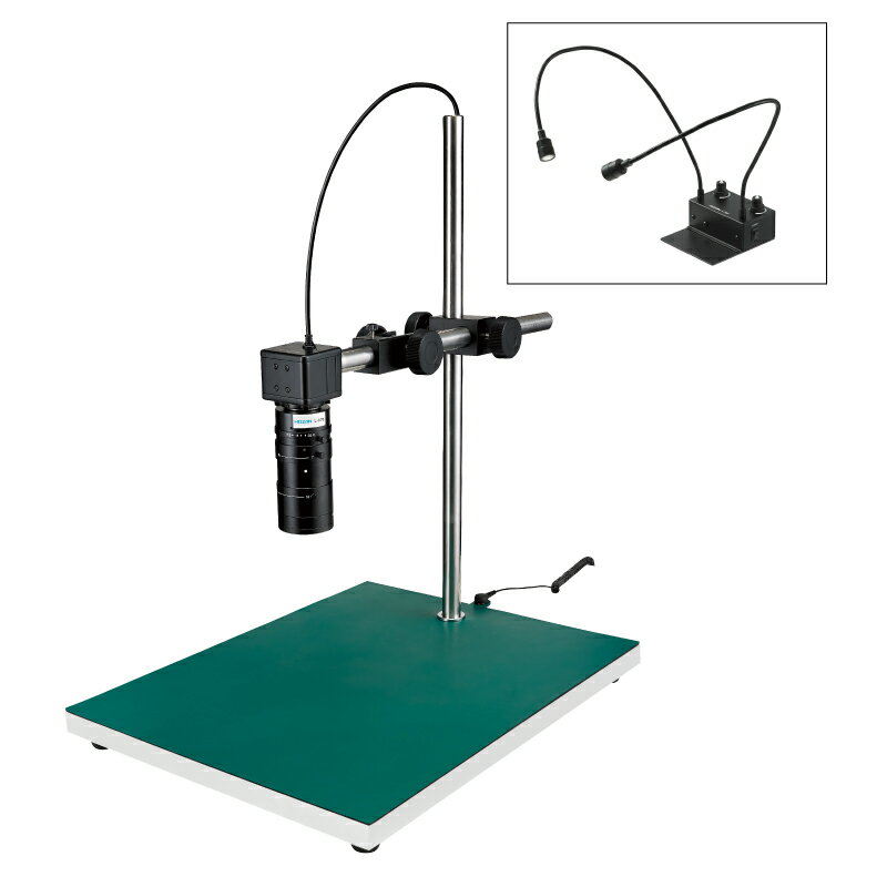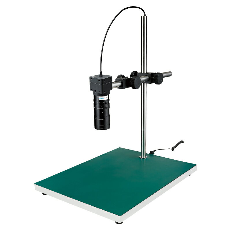 堅牢で取付ネジを多数備えた500万画素USBカメラのセットです。A4サイズの面発光照明付。レンズは倍率のみ調整可能なズームレンズで、補助照明が無い環境でもある程度使用可能です。大きさに加え高さもある観察対象や、作動距離を大きく取りたい場合におすすめです。通常3~4日以内に発送します。 視野 20×15~2.8×2.1mm 倍率※1 35~250× 作動距離 105mm ベース寸法 350(W)×450(D)mm ※スペックは計算値です。 ※1. 24型ワイドモニター:解像度1920×1080 使用時 取扱説明書ダウンロード