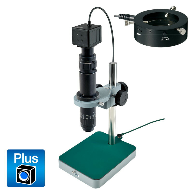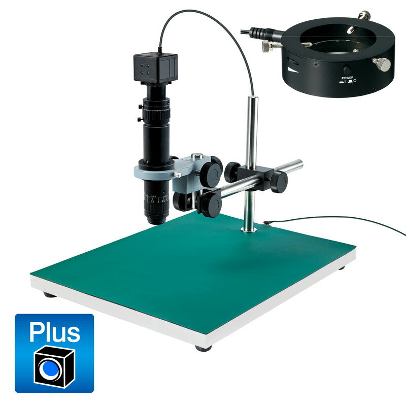 商品説明 価格と性能を両立した300万画素USBカメラのセットです。使い勝手のよいLEDリング照明付き。レンズは幅広い倍率をカバーできるワイドレンジの高倍率ズームレンズ(1.7~13.7×)です。B4サイズ程度までの大きめな観察対象におすすめです。通常3~4日以内に発送します。 《ライセンスキー発行コード付》 観察・計測用ソフトウェア【CamPlus】にて、無料の標準機能に加えて拡張機能もご使用いただけます。 ※ ご購入前にソフトウェアの動作条件などをご確認ください。 視野 3.4×2.6~0.4×0.3mm 倍率※1 160~1350倍 作動距離 66mm ベース寸法 350(W)×450(D)mm ※スペックは計算値です。 ※1. 24型ワイドモニター(解像度1920×1080)使用時 取扱説明書ダウンロード 取扱説明書(ライセンスキー)ダウンロード