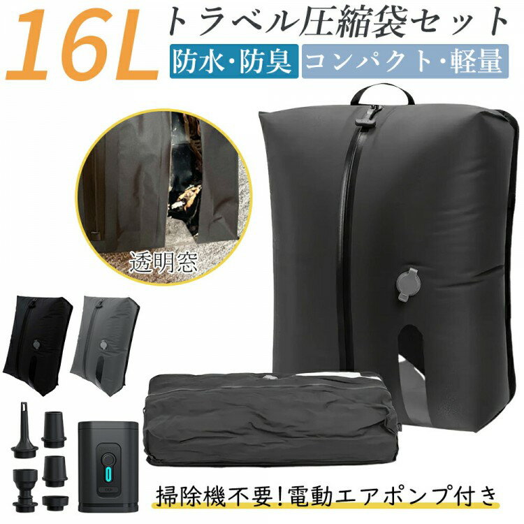 16(約1-2泊分)の大容量で衣類をまとめて圧縮し、荷物の容量を約50%削減!旅行や出張に大活躍! 旅行 トラベル 出張圧縮袋 トラベルポーチ 16L 旅行用圧縮袋 圧縮ポーチ 旅行用ポーチ 大容量 圧縮トラベル 圧縮バッグ 真空圧縮バッグ 衣類 おしゃれ 電動ポンプ付き 撥水加工 コンパクト 軽量 収納