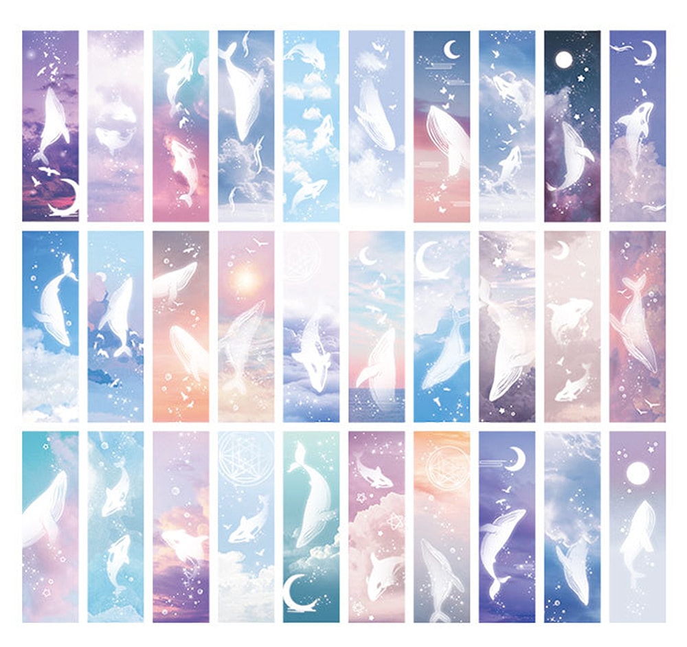 ギフト メッセージカード 封筒 しおり 栞 ブックマーク いるか 鯨 くじら シャチ 海の生き物 海洋最短当日出荷◆しおり ブックマーク ブックマーカー いるか 鯨 くじら シャチ 幻想的 月 星 水彩 美麗 メッセージカードとしても 30枚セット