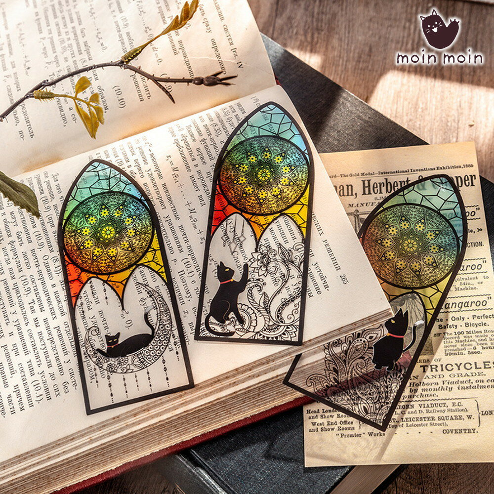 猫 ネコしおり 栞 ブックマーク プラスチック pet ラッピング コラージュ しおり ブックマーク ブックマーカー 栞 bookmark プレゼント お祝い ギフト メッセ最短当日出荷◆しおり ブックマーク 猫好きにはたまらない 猫 ネコ 18種 36枚セット | ステンドグラス 美麗 影絵 黒猫 黒 ブラック (月 と 空/星空/蝶 と 月/教会)