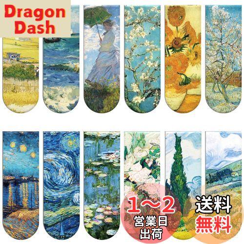 【送料無料】Simpeak 磁気ブックマーク 12個入り マグネットしおり 聖書の言葉 モネ ゴッホ レトロ調 磁石しおりセット 学生 教師 読書