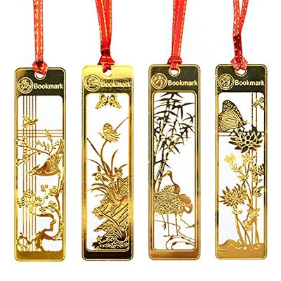 Fantasyon しおり ブックマーカー 栞 四君子(しくんし) 梅蘭竹菊 透かし彫り 古風シリーズ 古典的 金属 ヴィンテージ